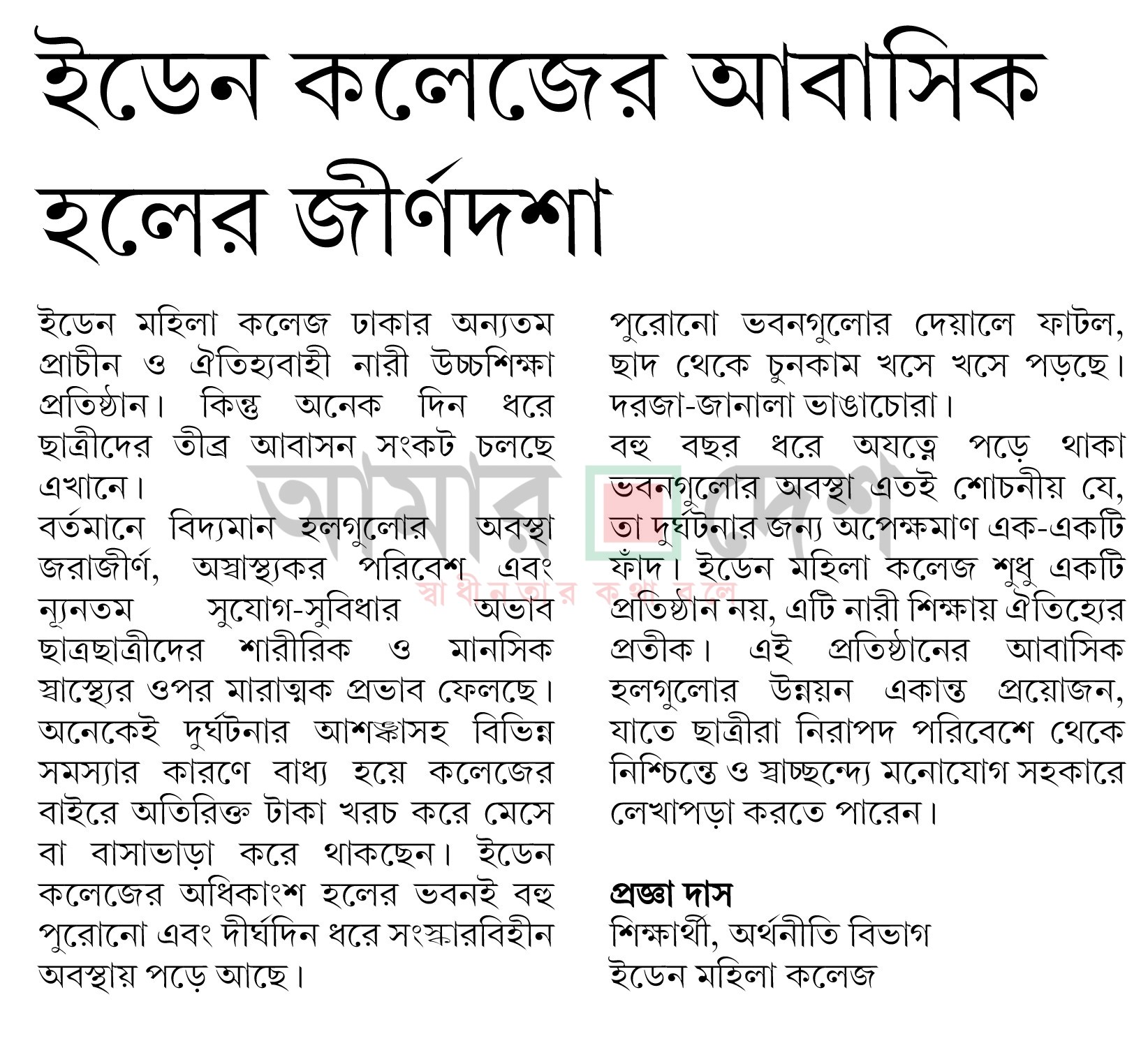 Homeআমার দেশ পত্রিকা "ইডেন কলেজের আবাসিক হলের জীর্ণদশা," progga March 03, 2025 0 আমার দেশ পত্রিকা, 3 March 2025epaper Link You Might Like View all