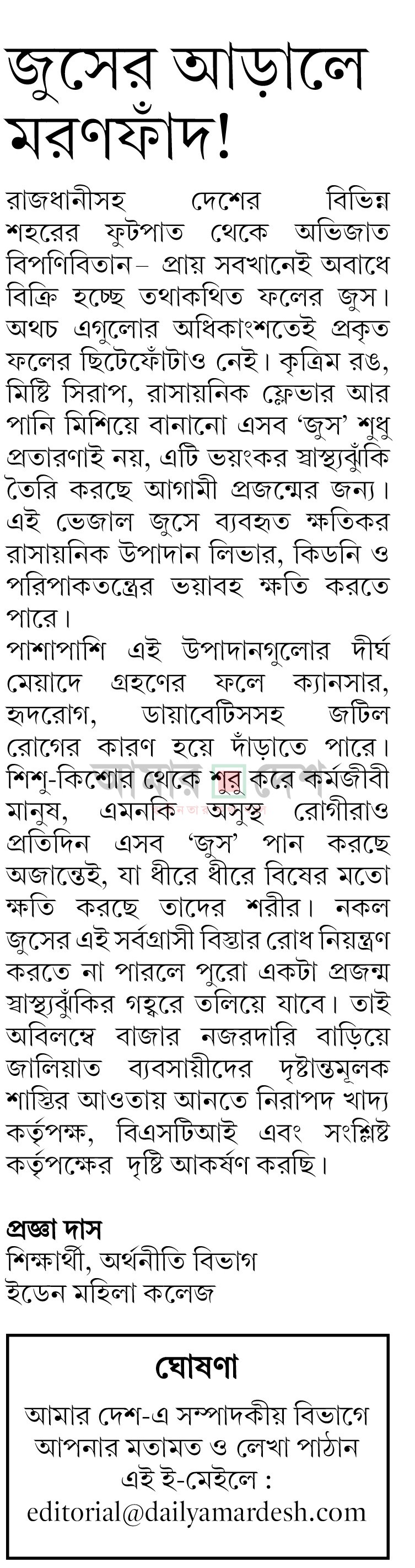 Homeআমার দেশ পত্রিকা জুসের আড়ালে মরণফাঁদ! progga March 18, 2025 0 আমার দেশ পত্রিকা,১৮ ই মার্চ ২০২৫ই- পেপার ক্লিক You Might Like View all