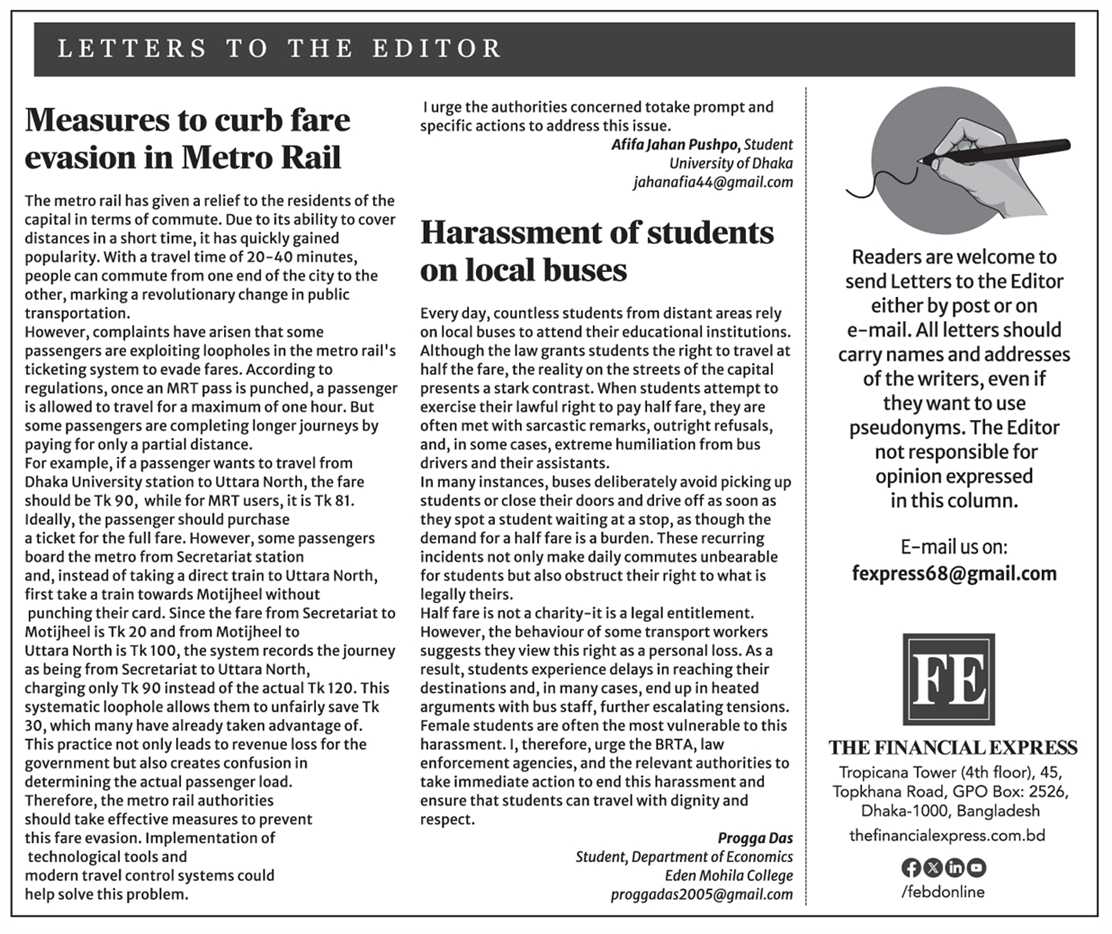 HomeThe Financial Express Bangladesh harassment Of on Local Buses progga March 21, 2025 0 The Financial Express Bangladesh, 20 March 2025E-paper Click Here You Might Like View all