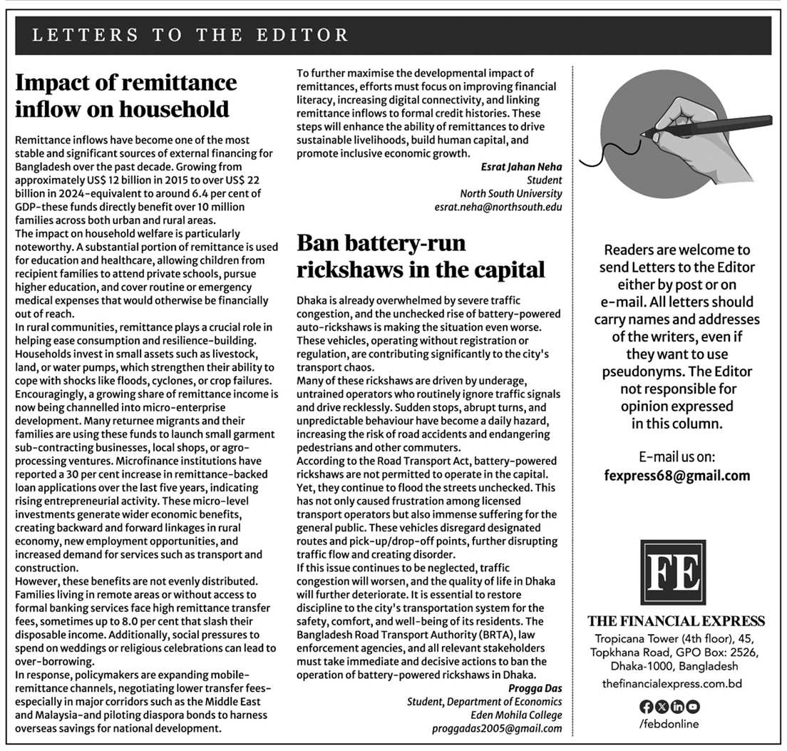 HomeThe Financial Express Bangladesh Ban Battery Run Rickshaws in the Capital progga April 24, 2025 0 The Financial Express Bangladesh,25 April 2025E paper click You Might Like View all