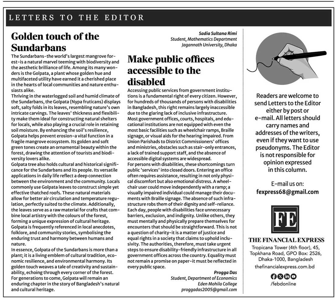 HomeThe Financial Express Bangladesh Make PubLic offices accessibile to the disabled progga April 12, 2025 0 The Financial Express Bangladesh, 12 April 2025 E Paper Click You Might Like View all