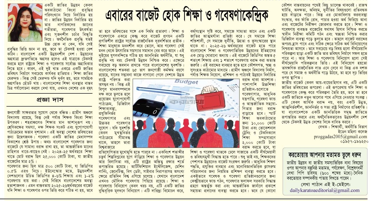 Homeদৈনিক করতোয়া পত্রিকা এবারের বাজেট হোক শিক্ষা ও গবেষণাকেন্দ্রিক Admin May 10, 2025 0 দৈনিক করতোয়া পত্রিকা ১০ ই মে ২০২৫ ইংই পেপার ক্লিক You Might Like View all