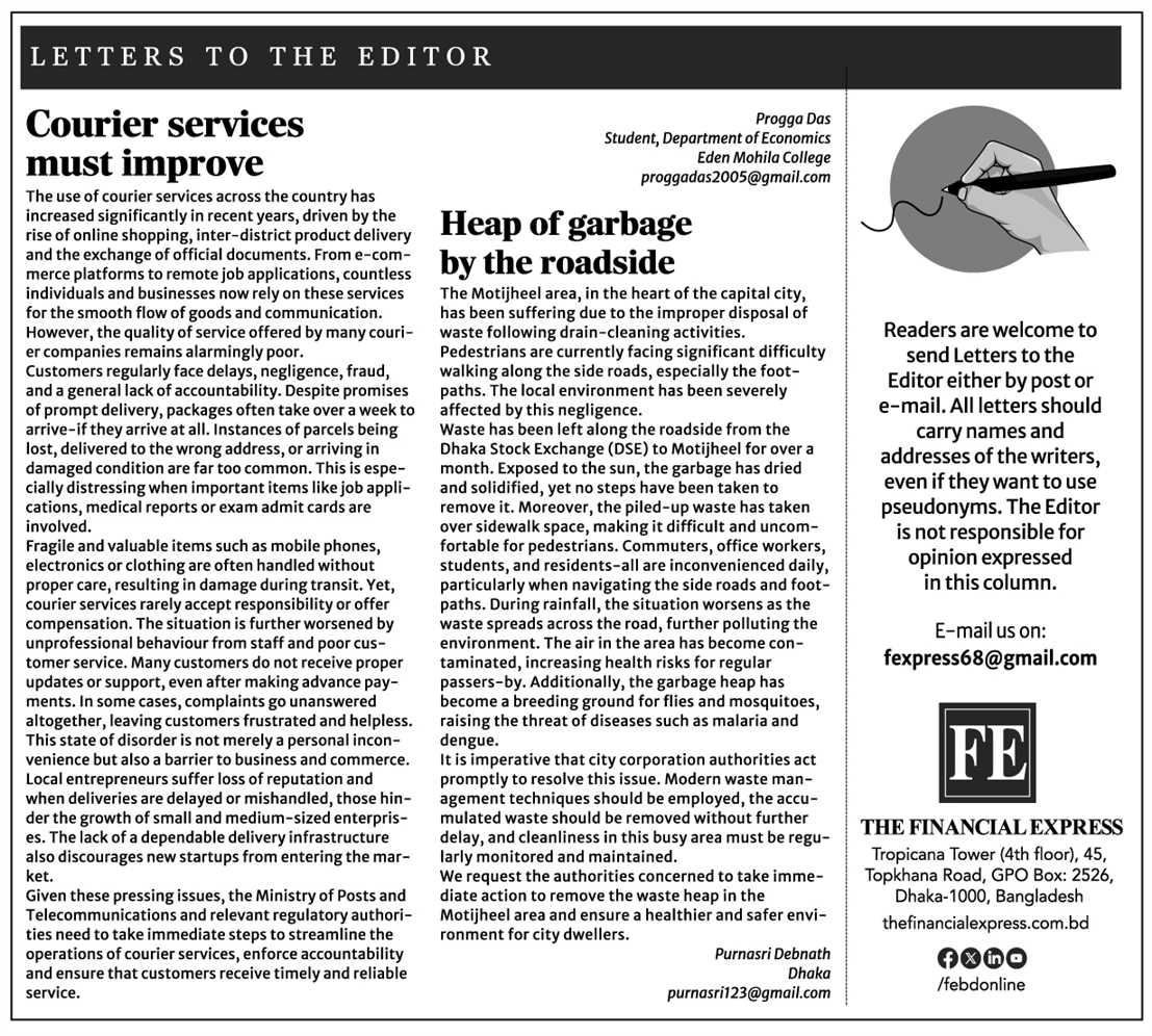 HomeThe Financial Express Bangladesh Courier service must improve Admin May 17, 2025 0 The financial express newspaper 17 may 2025E paper click Writter By Progga das eden Mohila College You Might Like View all