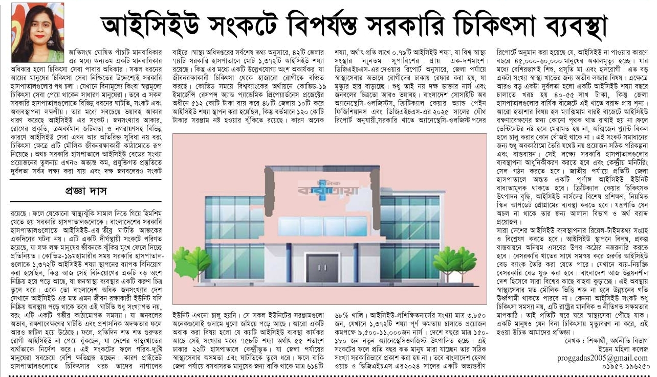 আইসিইউ সংকটে বিপর্যস্ত সরকারি চিকিৎসা ব্যবস্থা
