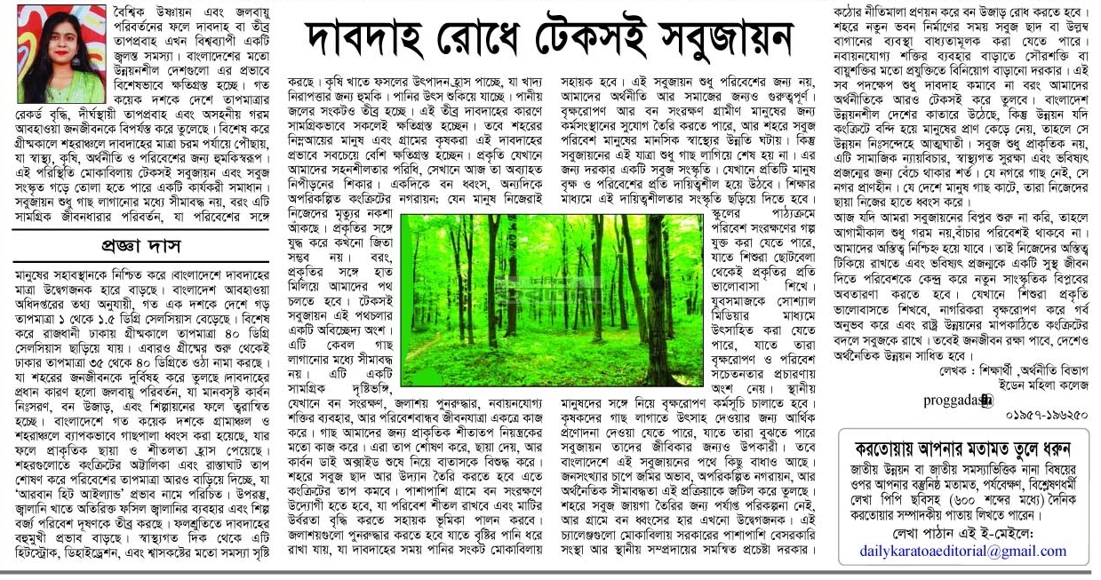 Homeদৈনিক করতোয়া পত্রিকা দাবদাহ রোধে টেকসই সবুজায়ন Admin February 26, 2026 0 দাবদাহ রোধে টেকসই সবুজায়ন You Might Like View all